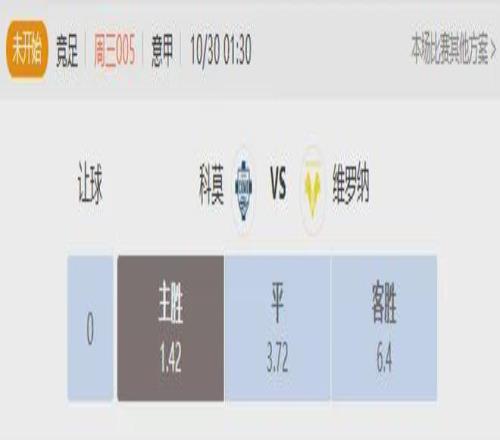 雙方上賽季交手中,科莫主場3:2擊敗對手,客場則與對手戰(zhàn)平,比較有優(yōu)勢。本賽季科莫實力和狀態(tài)都更勝一籌,本場勝算自然更大。機構(gòu)初始給科莫1.0讓步居多,同樣更看好科莫勝出。